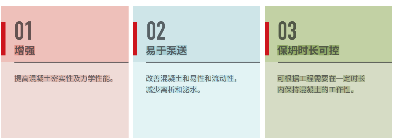 GBM-100(標(biāo)準(zhǔn)型)具有減水功能和增強效果,可改善混凝土泵送性能,對混凝土凝結(jié)時間無明顯影響。