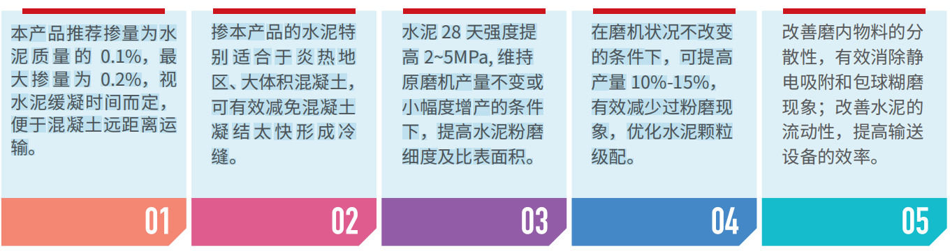 GBM-Ⅰ是新一代水泥助磨劑,具有緩凝、增強、 增產(chǎn)、降低成本、減少電耗等功效,適用于緩凝型水泥生產(chǎn)。
