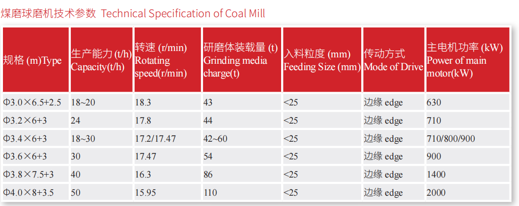 球磨機技術(shù)參數(shù)