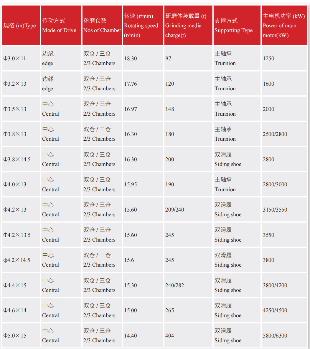 水泥球磨機技術(shù)參數(shù)