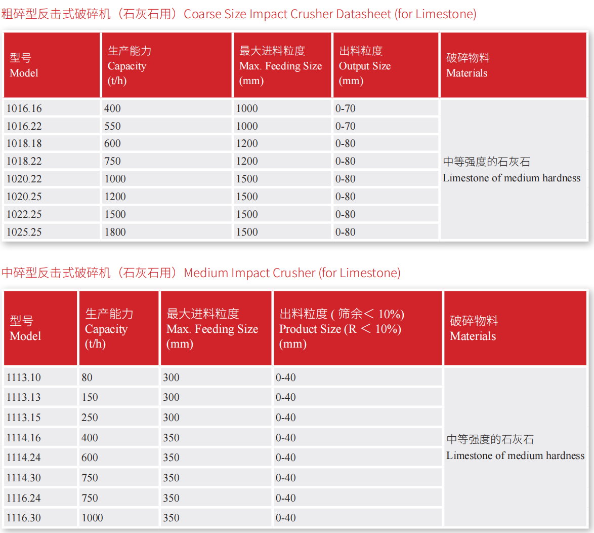 用于破碎中等硬度石灰石等物料,入料粒度大,破碎比大,電耗低。成品粒形滿足混凝土產(chǎn)品對(duì)片狀顆粒含量的要求。