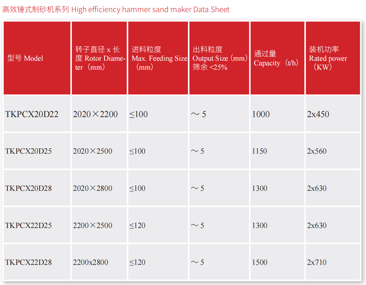 TKPCX 系列高效制砂機是根據(jù)多年的錘式破碎機的經(jīng)驗,研發(fā)的大型錘式制砂機,用于砂石骨料細碎,機制砂等,適用于抗壓強度小于 200MPa 的石灰石。