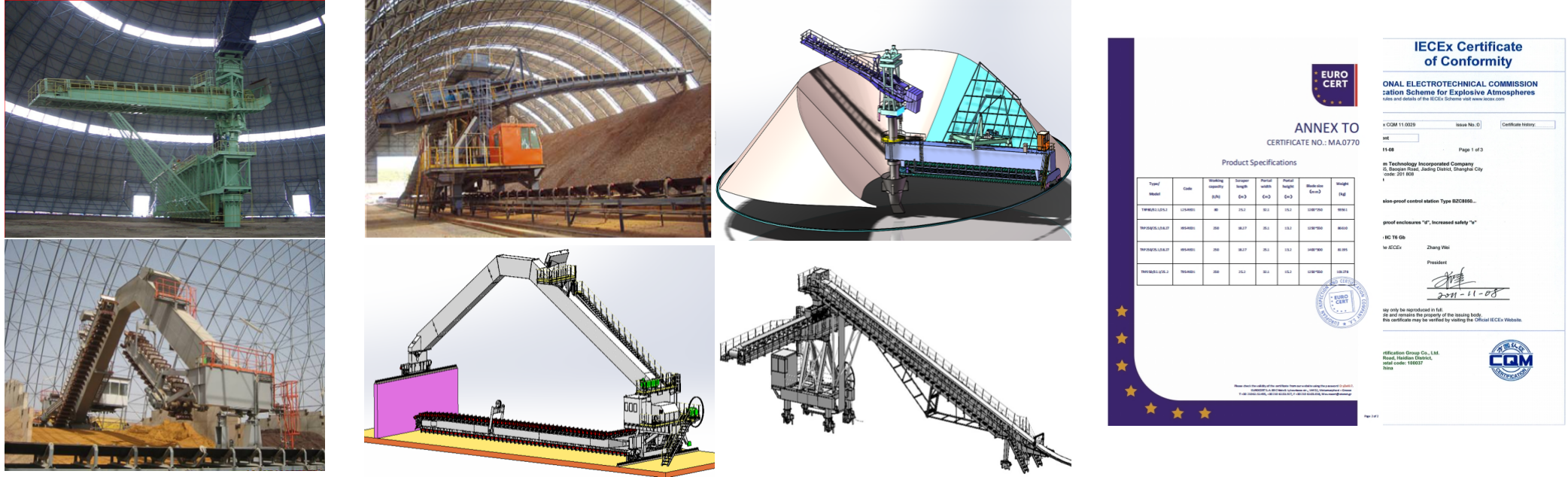 全球累計銷售量300+臺,全球市場份額占比率超過20%。堆料機的最大功率為3000TPH,取料機的最大功率為2500TPH。設備已獲得CE&Atex證書。