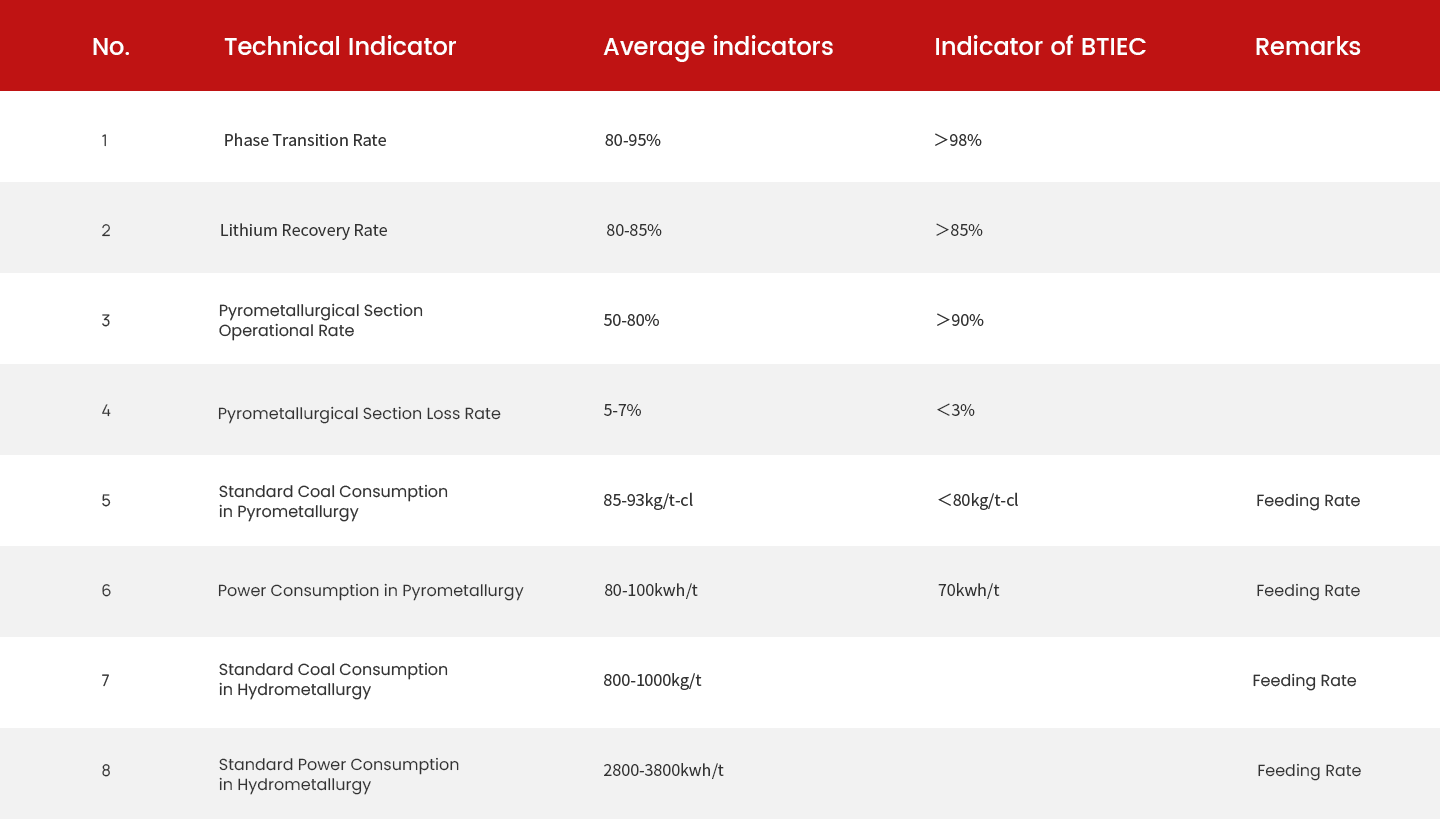• The annual energy consumption indicators of the cement industry and the lithium salt industry are similar, the existing indicators of cement industry meet the needs of lithium salt preparation.